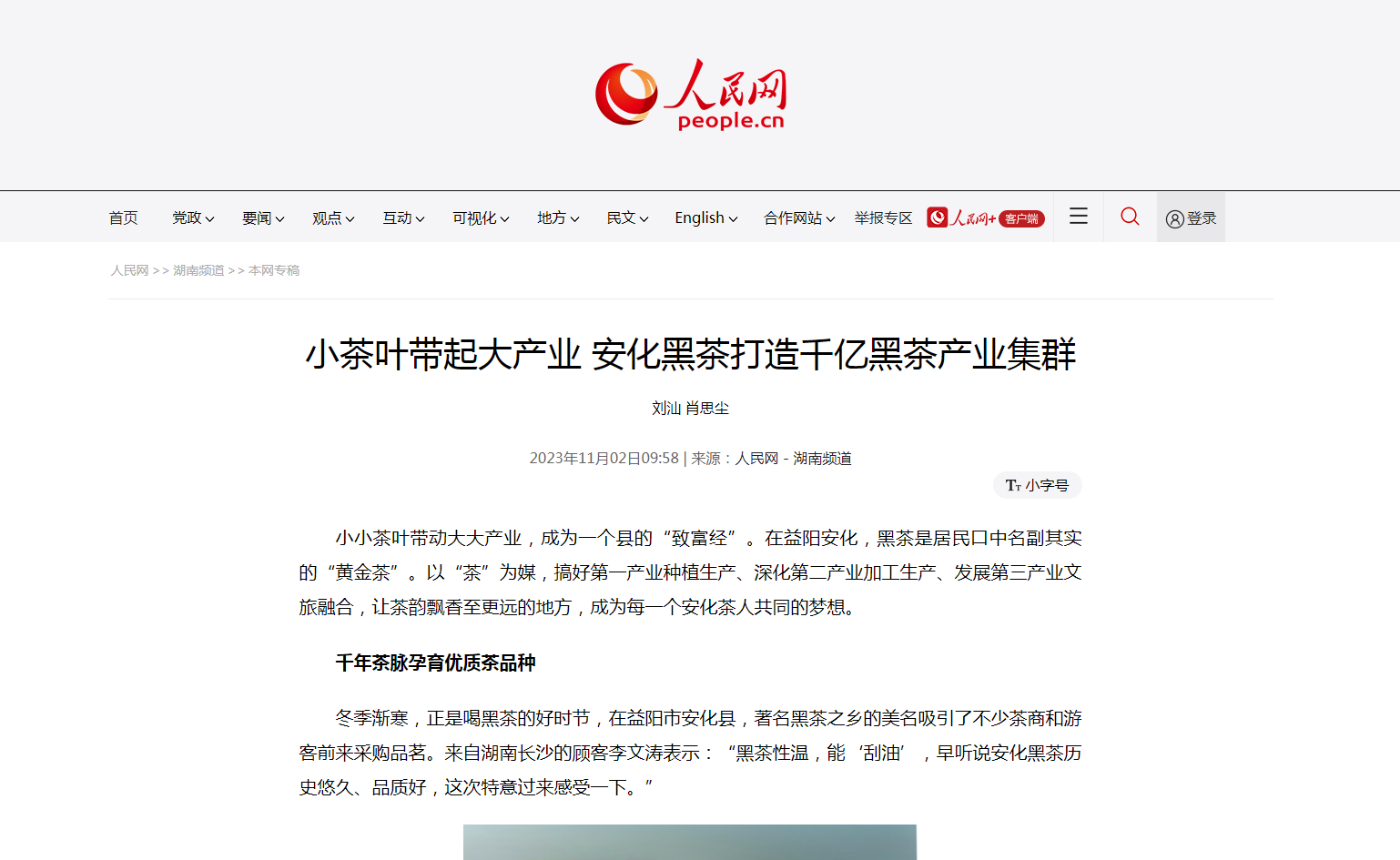 小小茶叶带动大大产业,成为一个县的“致富经”。在益阳安化,黑茶是居民口中名副其实的“黄金茶”。以“茶”为媒,搞好第一产业种植生产、深化第二产业加工生产、发展第三产业文旅融合,让茶韵飘香至更远的地方,成为每一个安化茶人共同的梦想。
