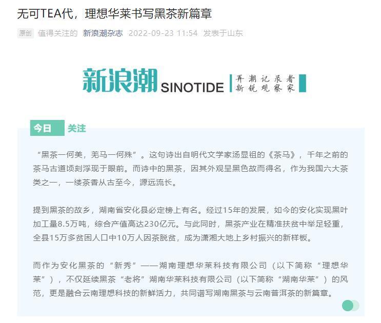 消费日报:理想华莱 产学研齐发力 奏响中国黑茶高质量发展新乐章中国是茶叶大国,有关数据显示,全国50%以上的省份种植茶叶。