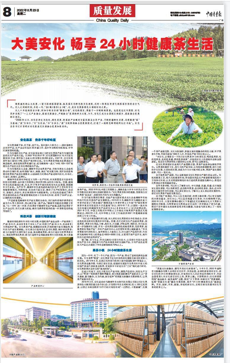 作为行业发展的引领者,农业产业化国家重点龙头企业湖南华莱始终践行科技兴茶的产业发展理念。2015年5月,湖南华莱与湖南农业大学茶学系签订了联合建设“湖南农业大学茶学博士工作站”和“国家教育部茶学重点实验室技术示范基地”协议;2019年7月,以国际一流水准为标准建设的湖南华莱产品研发中心(质量检测中心)正式挂牌启用;2021年3月,中国工程院刘仲华院士工作站在万隆黑茶产业园正式揭牌成立;2022年4月,刘仲华院士专家工作站获评 2021年度湖南省模范院士专家工作站。