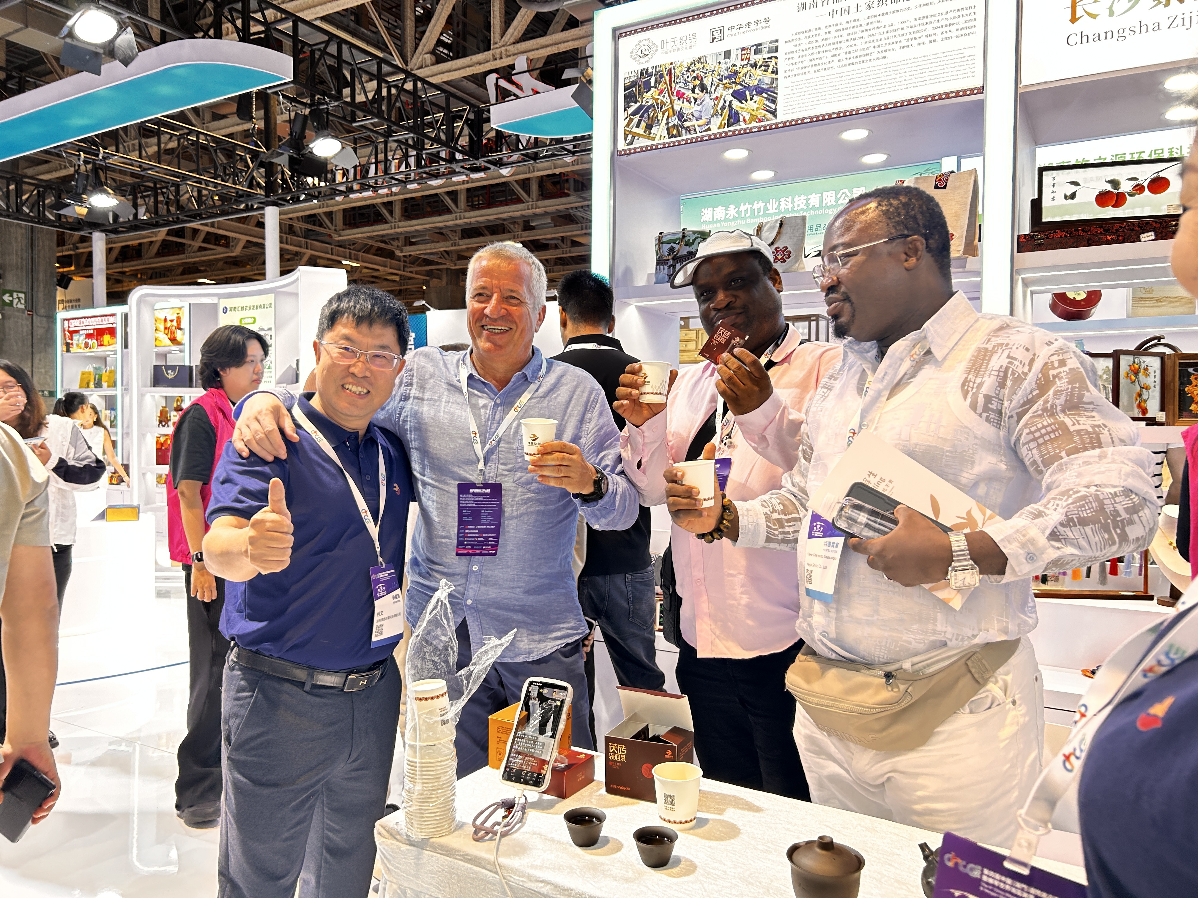 展位上,公司的特色产品琳琅满目、精彩纷呈。既有遵循传统工艺精心制作的醇厚黑茶,其浓郁的茶香仿佛穿越了时光的长河,让人回味无穷;也有巧妙融入现代科技与时尚元素的创新茶产品,展现出传统与现代完美融合的独特魅力。其中,理想华莱的袋泡茶和速溶茶更是成为了展会焦点,以其便捷的饮用方式和独特的口感,深受世界各国友人的喜爱与赞誉。